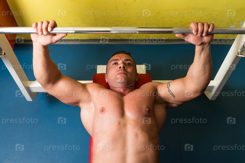 Культурист тренируется со штангой