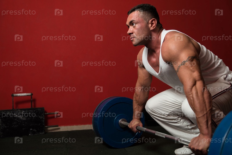 Культурист готовится поднять штангу