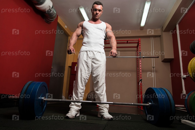 Культурист готовится поднять штангу