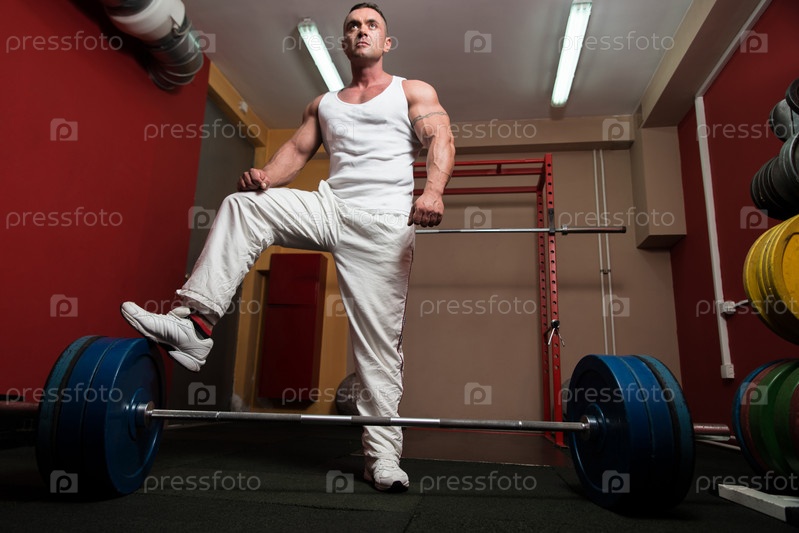 Культурист готовится поднять штангу