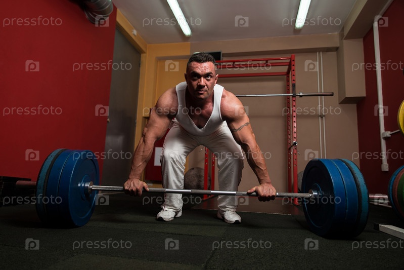 Культурист готовится поднять штангу