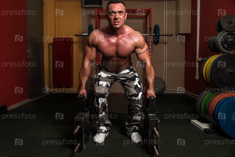 Культурист поднимает тяжести