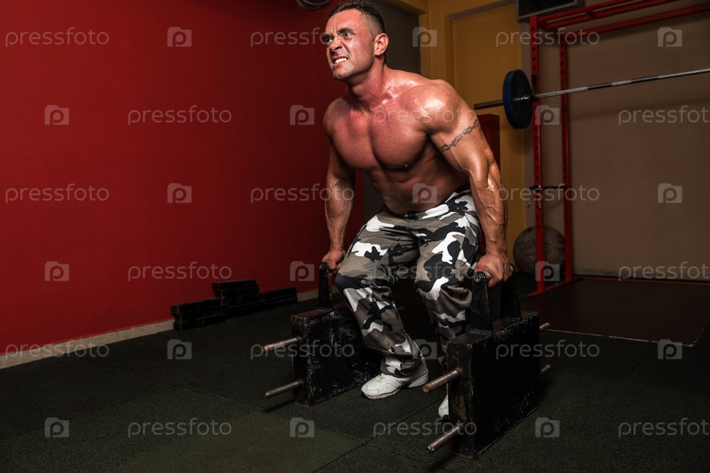 Культурист поднимает тяжести