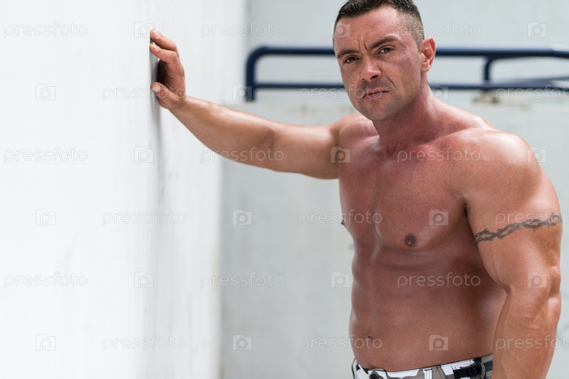 Мускулистый мужчина отдыхает после тренировки