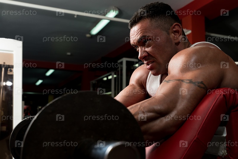 Культурист делает упражнение со штангой