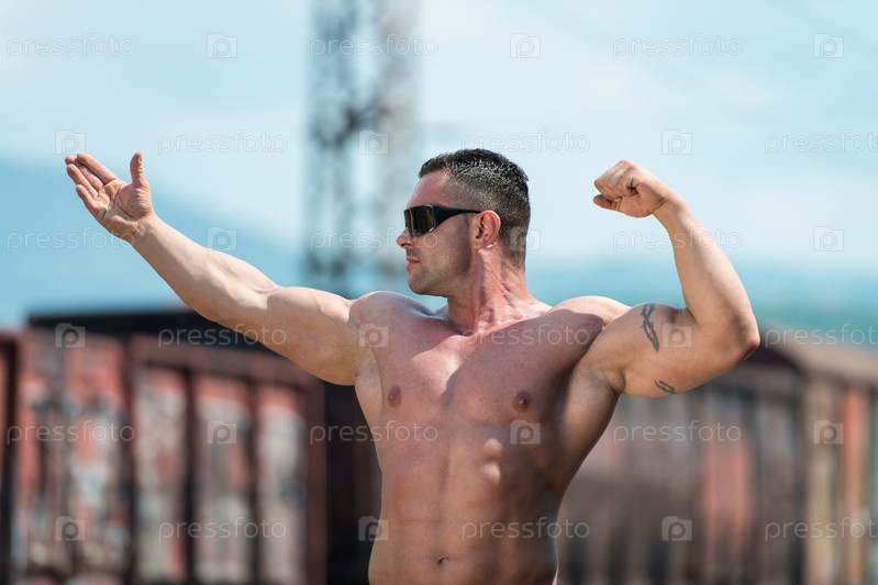 Мужчина демонстрирует мышцы