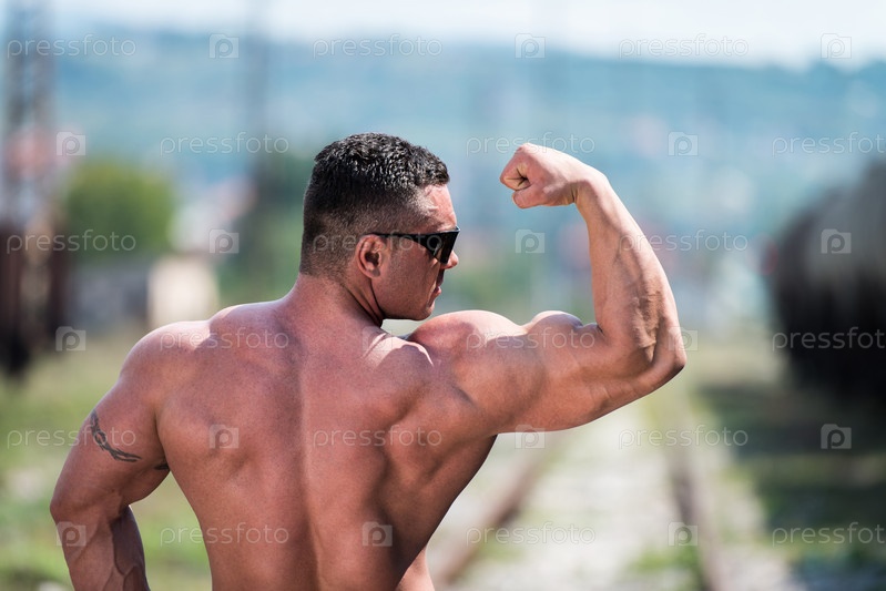 Бодибилдер демонстрирует бицепсы