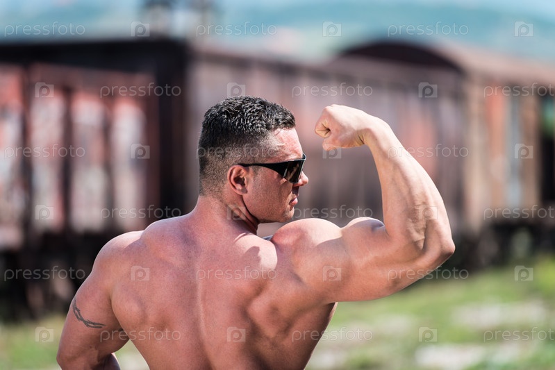 Бодибилдер демонстрирует бицепсы