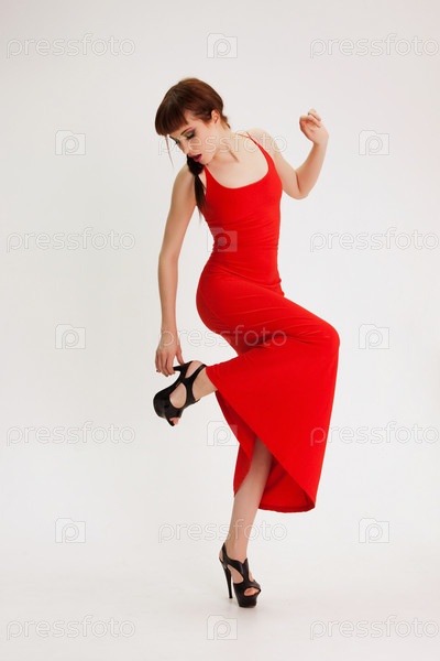 Портрет девушки, поправляющей каблук