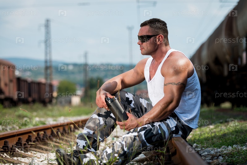 Мужчина с протеиновым коктейлем