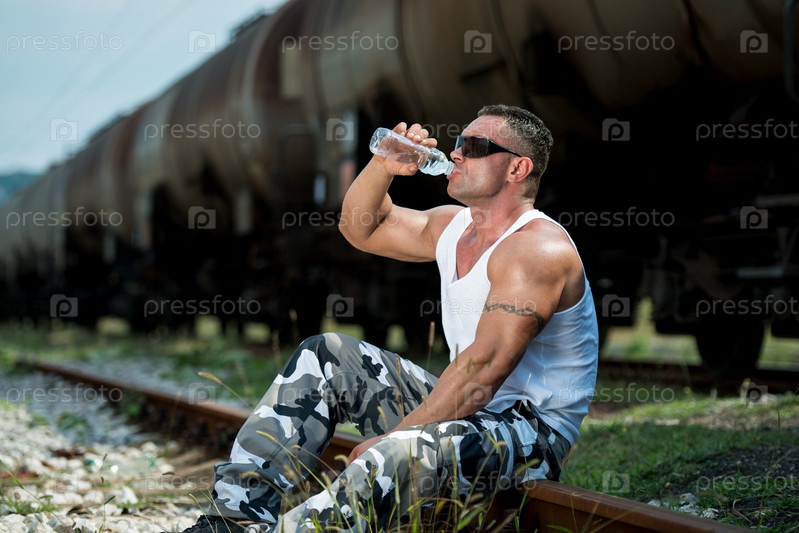 Мужчина пьет воду после тренировки