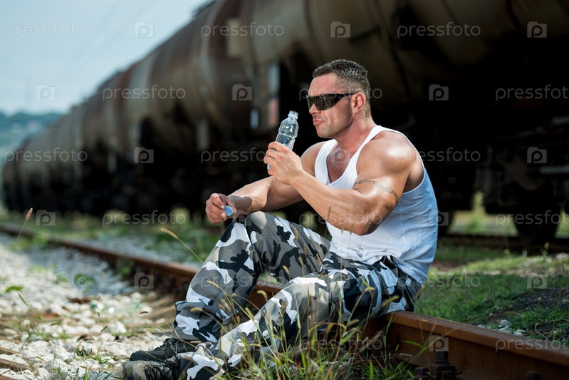 Мужчина пьет воду после тренировки