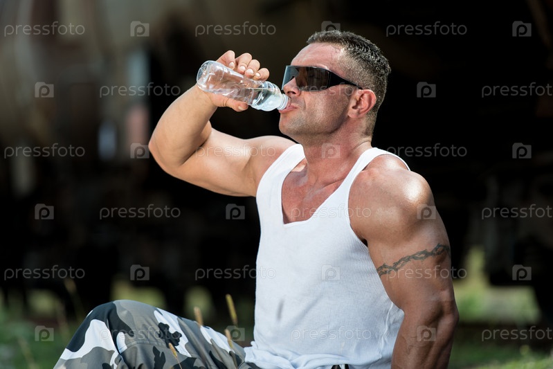 Мужчина пьет воду после тренировки