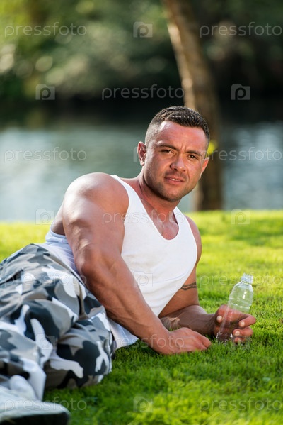 Мужчина пьет воду после тренировки