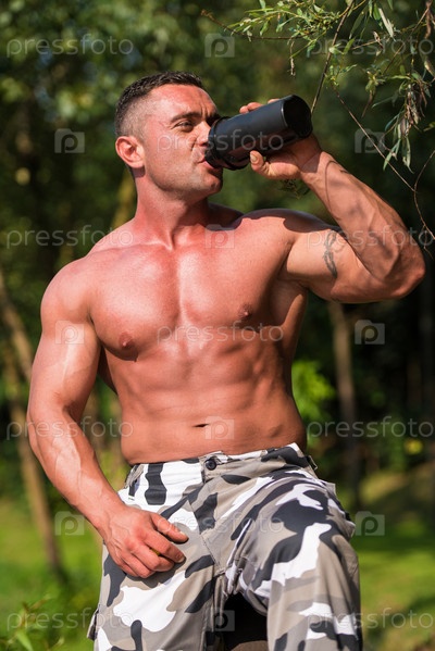 Культурист отдыхает на природе