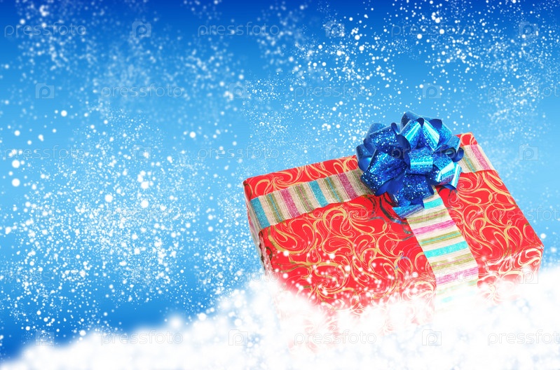 Праздничный рождественский подарок на абстрактном новогоднем фоне