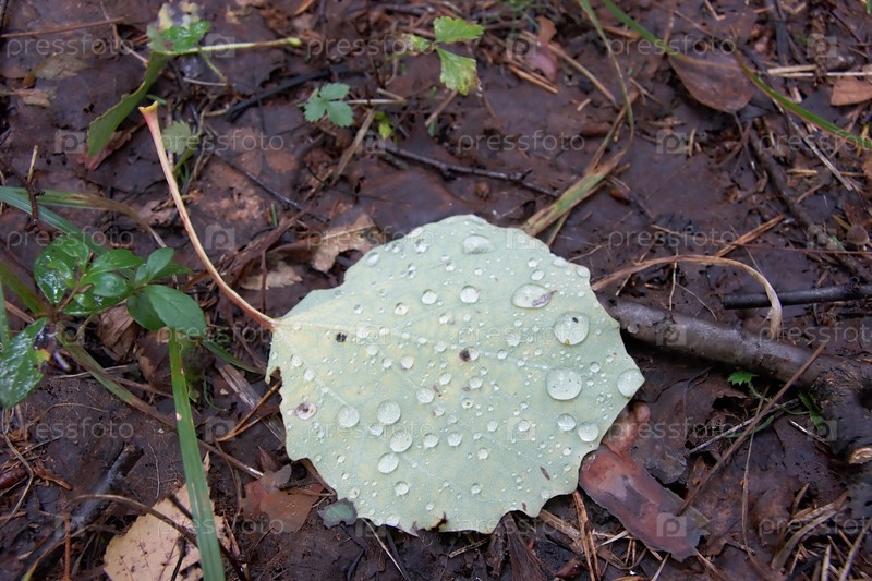 Павший лист осины с капельками воды