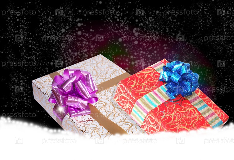 Рождественские подарки на новогоднем фоне
