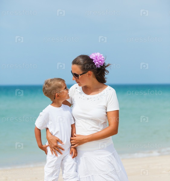 Мать и сын на пляже