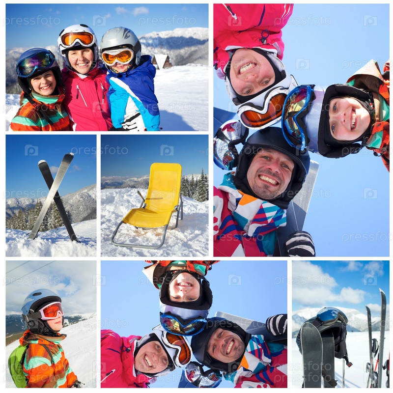 Лыжный спорт, зима, семья