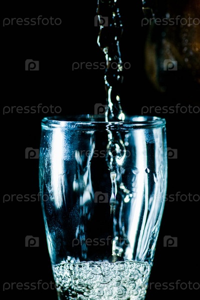 Напиток льется в стакан на черном фоне