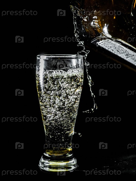 Напиток льется в стакан на черном фоне