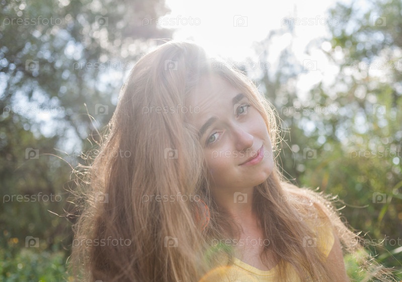 Симпатичная блондинка на открытом воздухе. Раскрашенное изображение