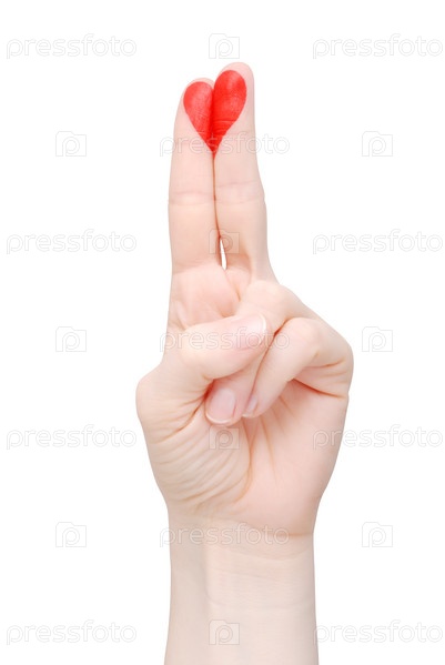 Красное сердце нарисовано на пальцах, изолированных на белом фоне