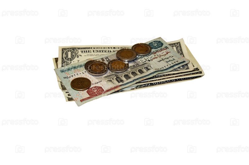 Американские и египетские деньги на белом фоне