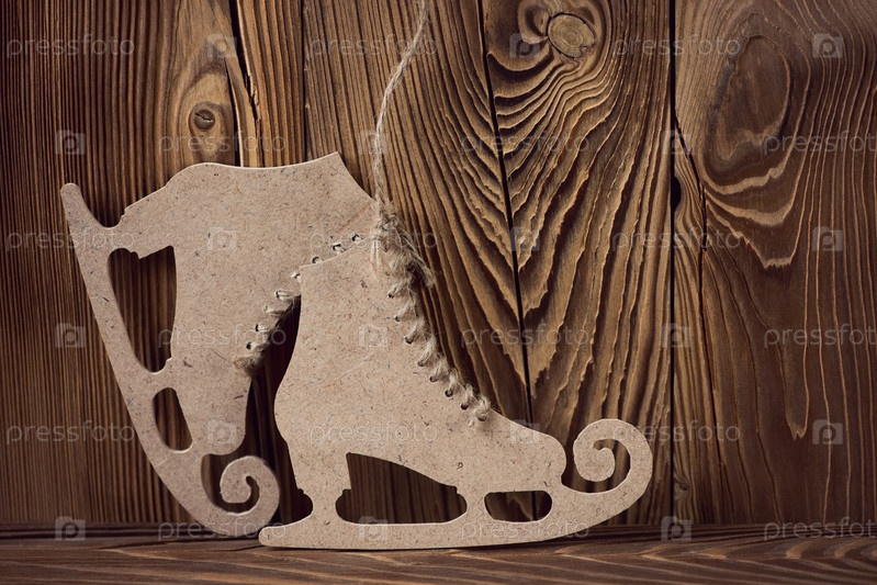 Картонные фигурные коньки, деревянный фон