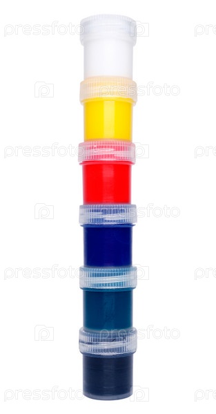 Многоцветные краски в контейнерах с крышками (изолированные)