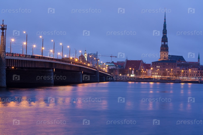 Набережная в ночном городе, Латвия