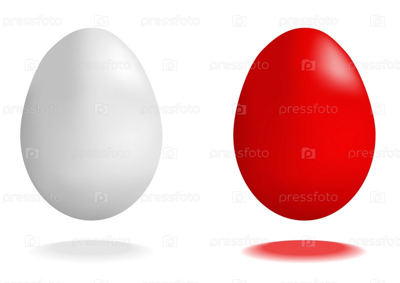Белое и красное яйца на белом фоне