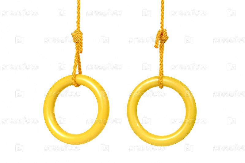 Два желтых кольца на веревке изолированы на белом фоне