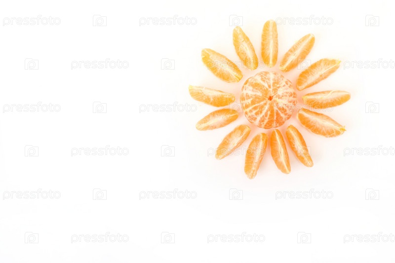 Ломтики свежего мандарина на белом фоне