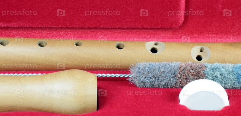 Деревянный духовой инструмент в красном чехле