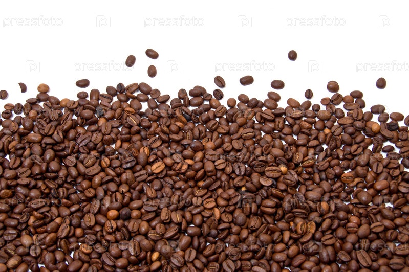 Белый фон, частично заполненный жареными кофейными зернами