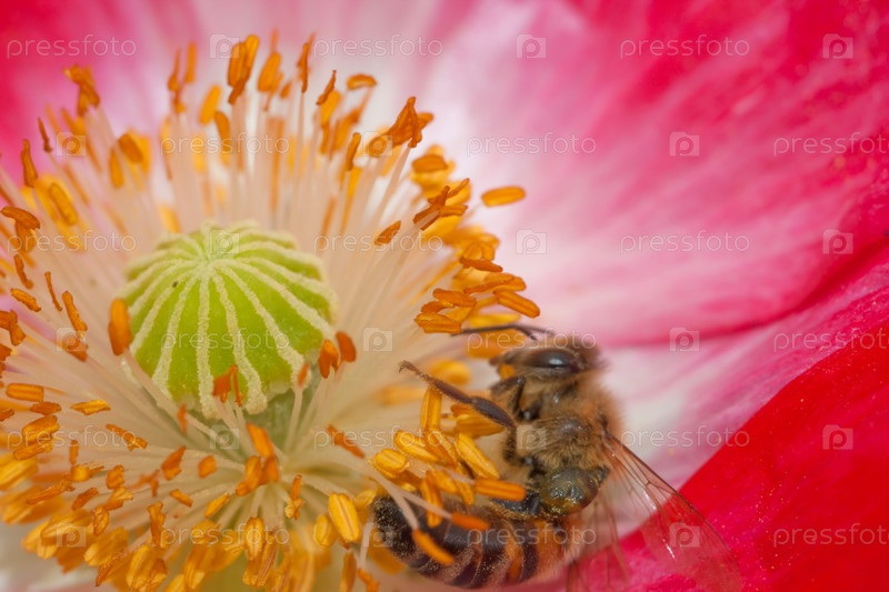 Пчела в розовом цветке