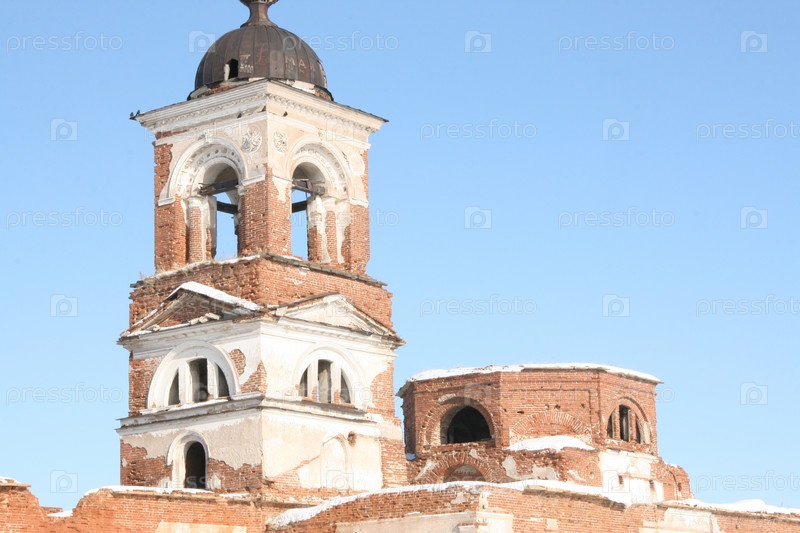 Полуразрушенная старая церковь Илии Пророка в селе Огневское, Челябинская область