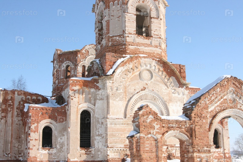 Полуразрушенная старая церковь Илии Пророка в селе Огневское, Челябинская область