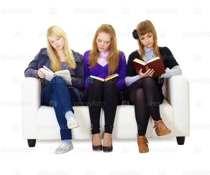 Три девочки-подростка читают книги