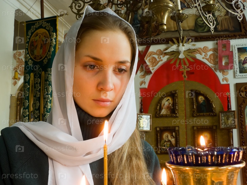 Девушка ставит свечку в православном храме