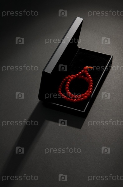 Коробка с красными бусами