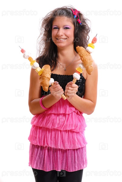 Молодая девушка с пирожными