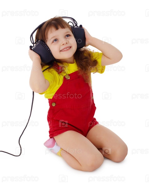Девочка слушает музыку в наушниках