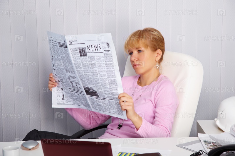 Женщина читает газету на рабочем месте