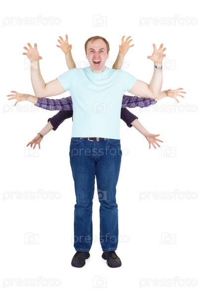 Смешной мужчина с восемью руками