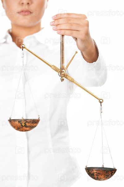 Женщина держит весы правосудия