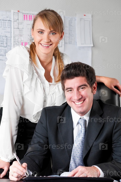 Успешные деловые партнеры в офисе
