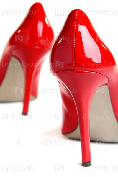 Красные туфли на высоких каблуках, изолированы на белом фоне